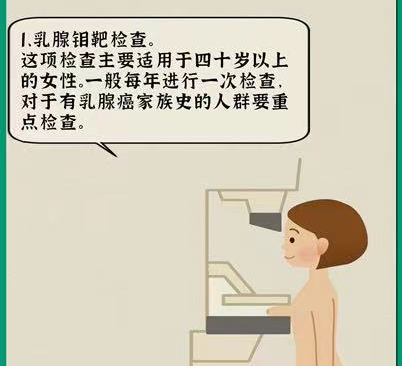 包括乳腺体检、乳腺彩色超声检查,如果初筛结果异常后续可能还需要接受乳腺 X 线检查、乳腺活检及组织病理检查等。