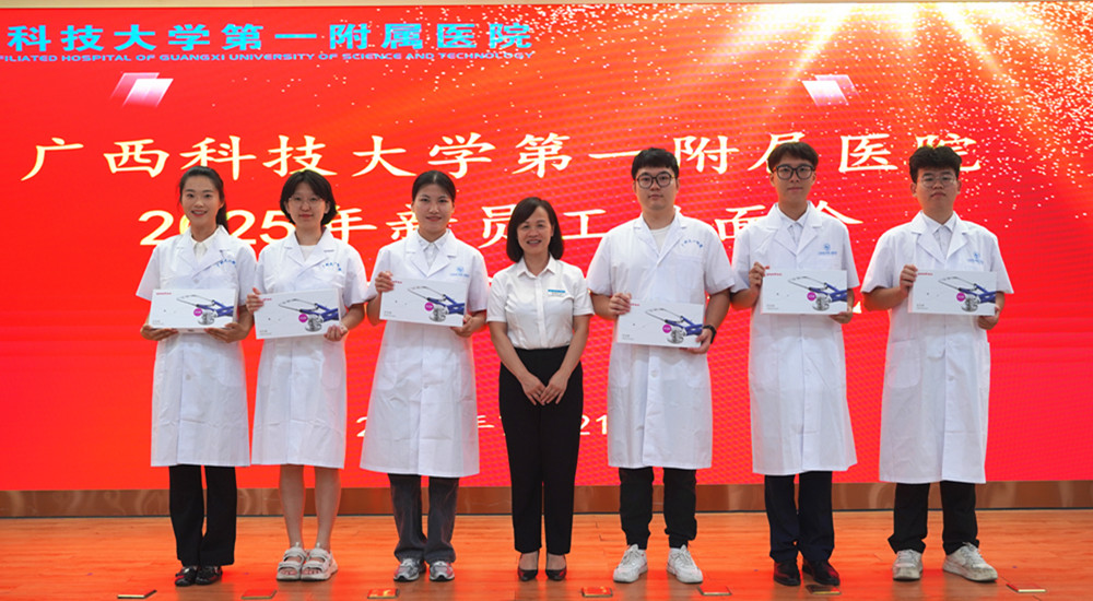 7月21日下午,广西科技大学第一附属医院在学术报告厅召开2025年新员工见面会暨岗前培训启动会。党委书记庞晓红,副院长(主持日常行政工作)黄进瑜等院领导出席会议。相关职能部门负责人,2024年及2025年入职未参加岗前培训员工、2025年新参加住院医师规范化培训学员等120多人参加会议。会议由党委副书记何曲波主持。