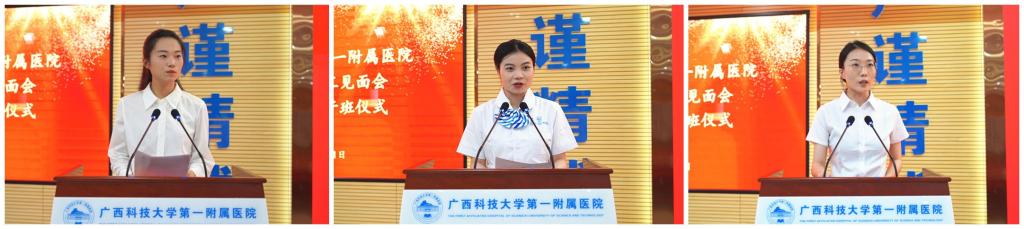 接着,刘泰源、莫秋月、梁甜甜分别作为新员工代表发言,她们纷纷表示,将以高度的责任心履行岗位职责,脚踏实地,稳步成长,为医院发展贡献自己的力量。