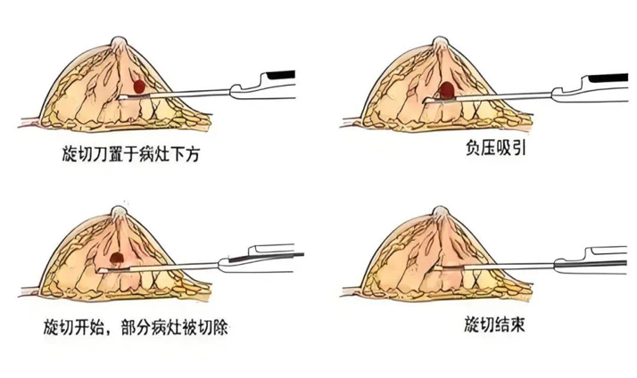 乳腺肿瘤真空辅助乳腺微创旋切系统是在实时超声定位引导下,通过细小的穿刺针孔实施乳腺肿物的完整切除,其途径获取的乳腺的肿瘤组织标本量充足,敏感性强,特异性高,为乳腺癌早期发现和诊断提供了更好的方法,同时也可进行乳腺良性肿瘤的微创切除。切除乳房包块后不但外部几乎无瘢痕,取得传统手术不能达到的美容效果,并且对内部乳管的损伤较小,更适合年轻女性。