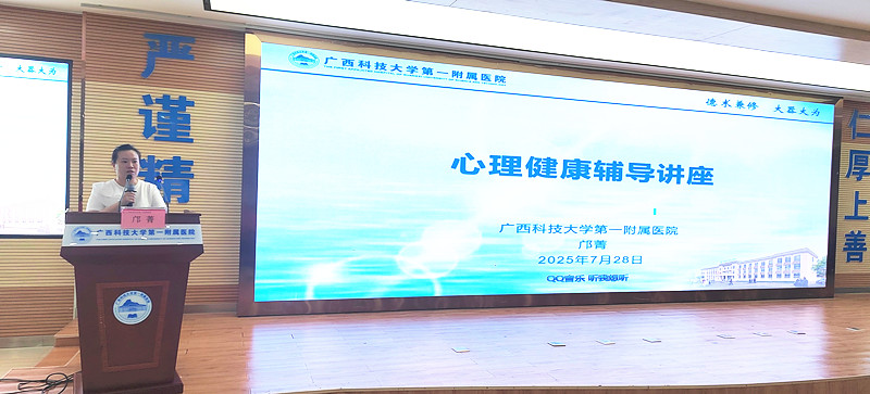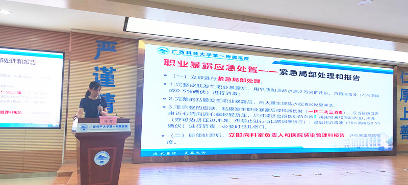 消防安全保卫科科长覃州首先进行了《消防安全知识讲座》。随后,感染管理科科长齐辉就《职业暴露的预防与处置》进行了详细讲解。最后,医务科科长邝菁带来了《心理健康辅导》。此次会议不仅强化了实习生和住培学员的安全防护意识,更为他们在临床实践中的健康成长筑牢了“防护网”。(图文来源/教学科 韦芳)
