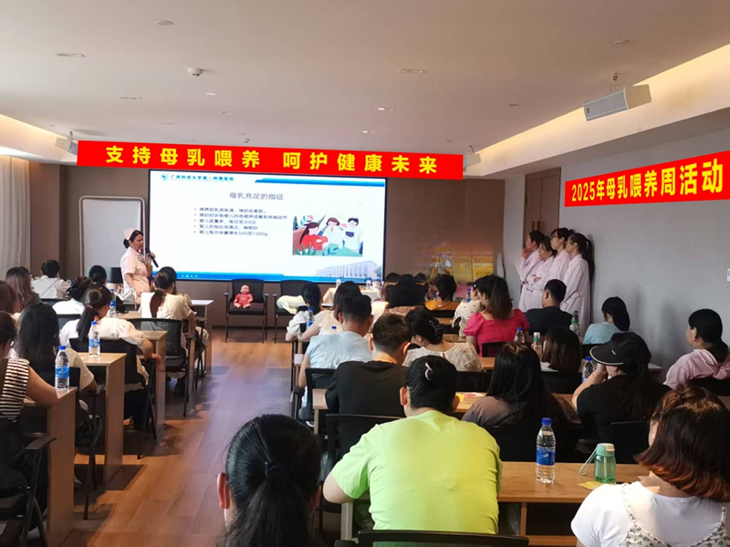 2025年8月1日--7日是第34个世界母乳喂养周,主题是“支持母乳喂养,呵护健康未来”,为了呼吁社会各界共筑母乳喂养暖链,帮助更多的家庭因母乳喂养受益,活动期间广西科技大学第一附属医院产科从产前(孕妇学校科普)、分娩时(产后早接触、早吸吮、早开奶)到产后(个性化指导),通过全方位、多维度宣教和“手把手”实操辅导,帮助50多位准妈妈和新手妈妈们顺利开启母乳喂养之旅。