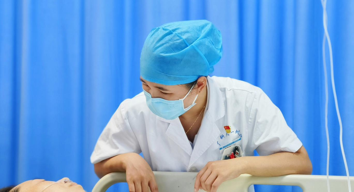 急诊科医师蒋阿妹亲切地查看病人的场景