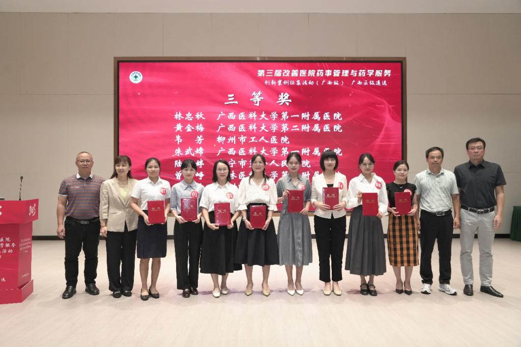 2025年8月31日,由中国医药卫生文化协会发起、广西药师协会主办、广西药师协会特殊人群药学服务专业委员会承办的"第三届改善医院药事管理与药学服务创新案例征集活动(广西站)"在南宁落幕。经过激烈角逐,我院药学部韦翠薇药师的案例《从药箱到“心桥”:临床用药共情网络的构建与实践》,凭借独特的创新视角、科学的设计和精彩的现场表现,从全区28家医疗机构的65个参赛案例中脱颖而出,荣获三等奖,该案例还将被推荐至全国案例评审。