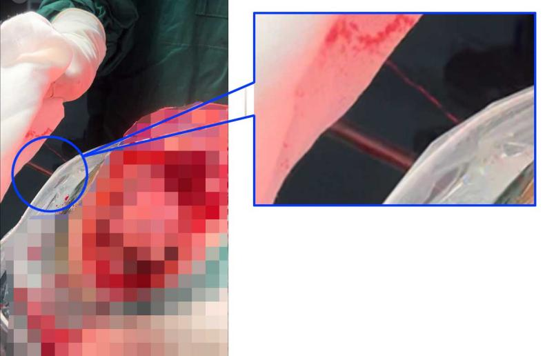 主刀医生池超超与第一助手黄曦等组成的手术团队,在无影灯下展开了精细操作。他们沿患者右侧额颞顶部作切口,打开骨窗,只见硬脑膜呈现出不祥的深蓝色,张力极高。当剪开硬脑膜的瞬间,暗红色的血块随之涌出——医生们小心翼翼地清除了约70毫升的血肿,并在深处发现了一根仍在喷血的皮层小动脉,他们使用双极电凝如同绣花般精准地将其止血。