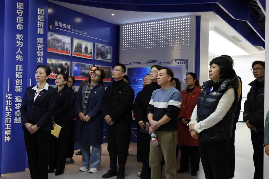 活动伊始,在柳州长虹航天技术有限公司总会计师何鸿的陪同下,陈瑞副院长带领全体党员走进公司党建文化中心与展室,从企业初创的奋斗故事到核心产品的创新突破,从航天技术的拓展应用到党建文化的深厚积淀,一幅幅展板、一件件展品生动呈现了“坚守使命、敢为人先、砥砺创新、追求卓越”的桂北航天前卫精神,让党员们在沉浸式参观中感悟发展传承精神,爱国主义情怀与责任担当进一步升华。