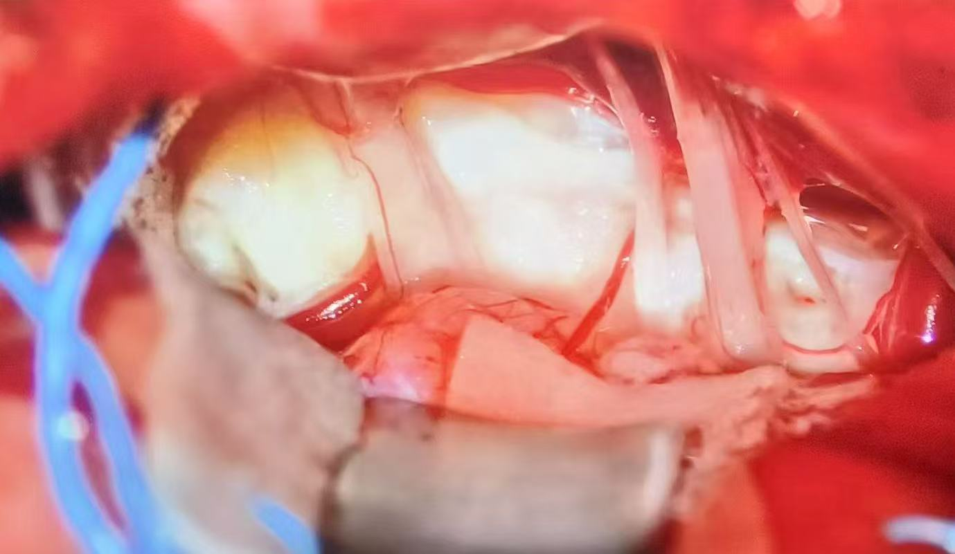 在完善术前准备后,手术如期进行。在麻醉科团队的密切配合下,池超超副主任医师主刀,在显微镜下在毫厘之间精准区分病灶与神经血管,如同在悬崖边跳舞般,将粘连紧密的肿瘤组织一点点剥离、吸除。最终,肿瘤切除满意,且周围的面神经、听神经及脑干功能完好无损。