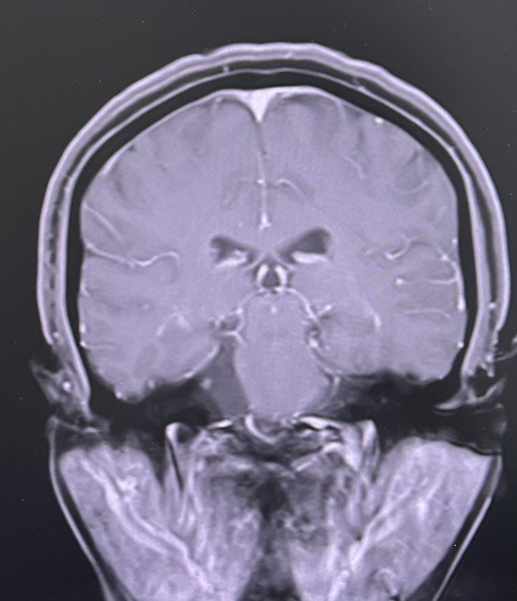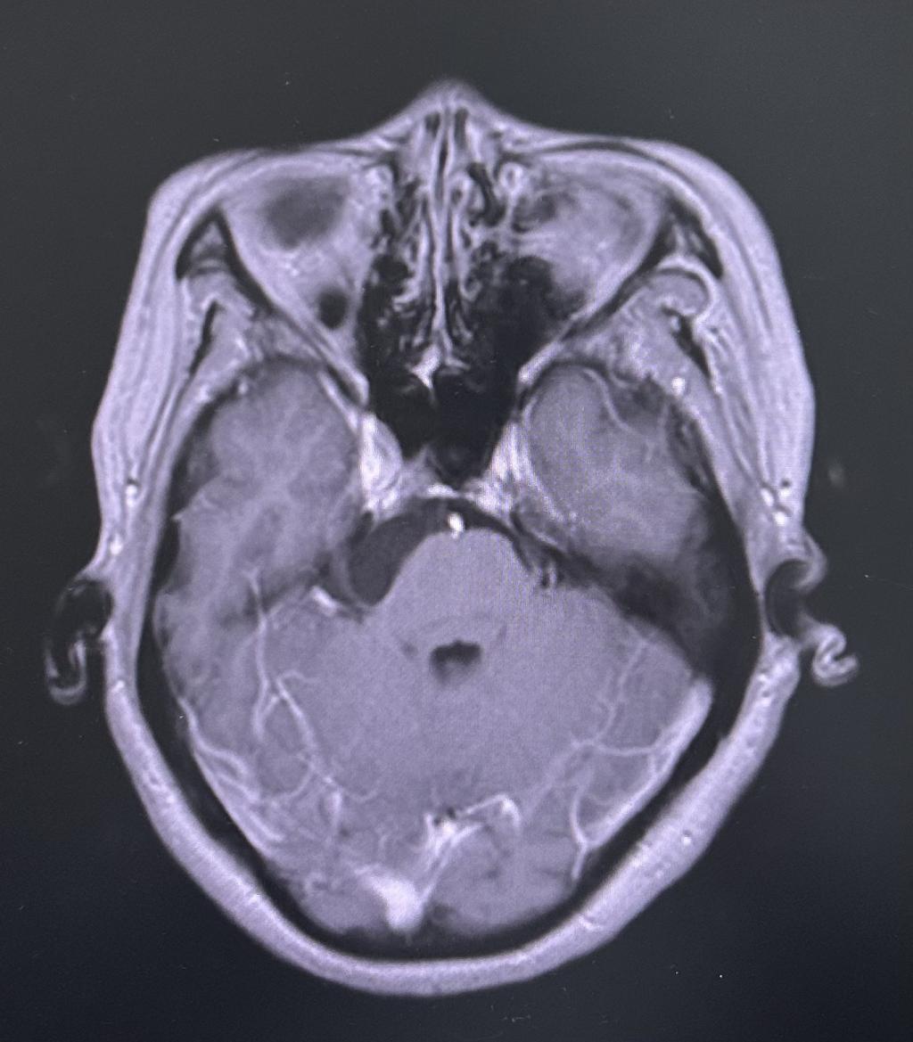 为求进一步治疗,贾女士慕名来到我院门诊就诊。门诊行颅神经-平扫(MR)提示:右侧桥小脑角区占位性病变,收治入神经外科住院治疗。