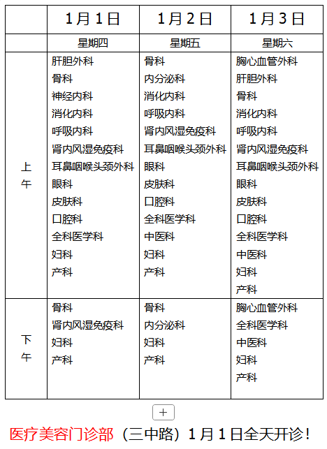 2026年元旦假期即将到来,1月1日-3日放假,1月4日(星期天)正常上班。为保障广大市民在假期就医,现将我院元旦假期门诊、急诊开诊信息公布如下。
