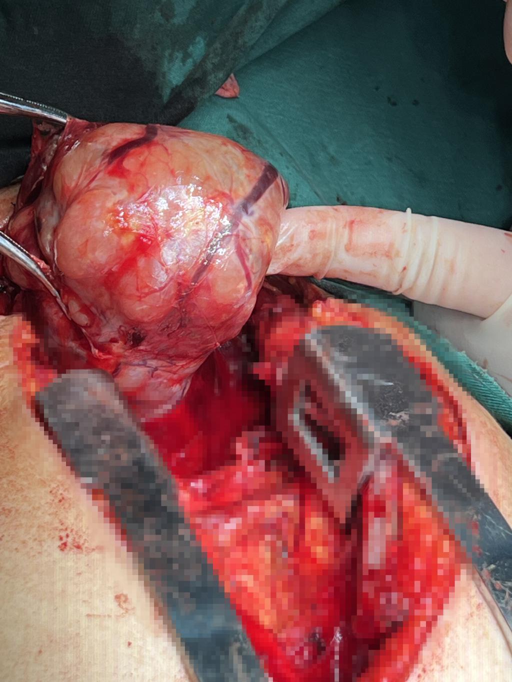经过反复论证,专家团队制定了 “颈部切口探查 + 胸骨正中劈开” 的阶梯式手术方案:先尝试通过颈部切口分离肿物,若粘连严重无法分离则立即转为开胸手术,在直视下完成甲状腺肿物切除,同时制定了喉返神经、甲状旁腺保护预案及胸骨固定技术方案。为降低手术风险,术前麻醉科团队对患者进行全面评估,优化甲亢控制方案,制定个性化麻醉策略;重症医学科提前做好术后监护准备,确保围手术期安全。