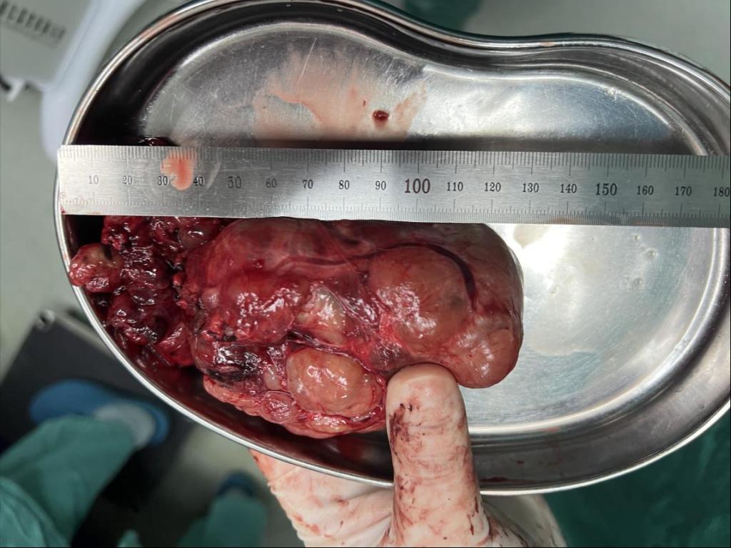 近日,广西科技大学第一附属医院普外科二病区联合心胸血管外科、麻醉科等多学科团队,成功为一名 73 岁高龄的胸骨后结节性甲状腺肿伴甲亢患者实施复杂手术,完整切除重达近 1 公斤的巨大肿物,攻克了高龄、多基础病、深位复杂甲状腺肿物的诊疗难题,标志着我院在复杂甲状腺疾病多学科联合救治领域达到了区内先进水平。
