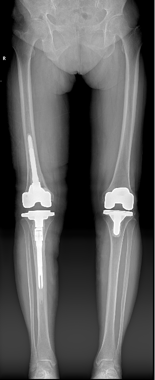 8年前刘奶奶在外院行双膝人工关节表面置换术,术后恢复良好,近2年来反复出现右膝关节疼痛,多次在柳州各大医院门诊及住院诊治,在药物治疗的干预下膝关节疼痛、肿胀时好时坏,来我院门诊诊断右膝关节置换术后感染、假体松动,入住我院关节外科/运动医学科。