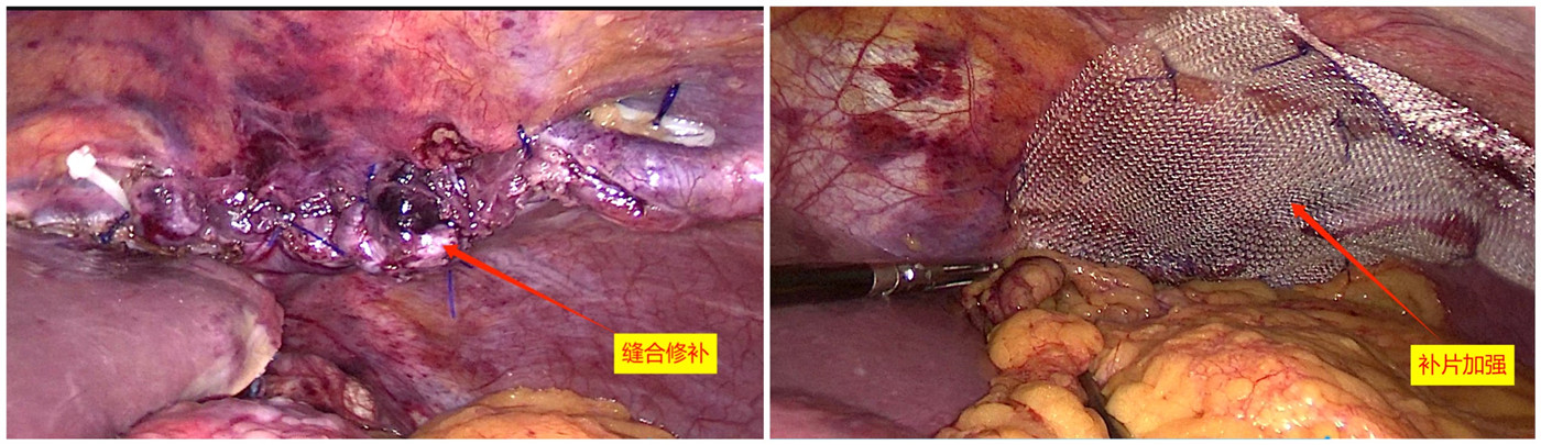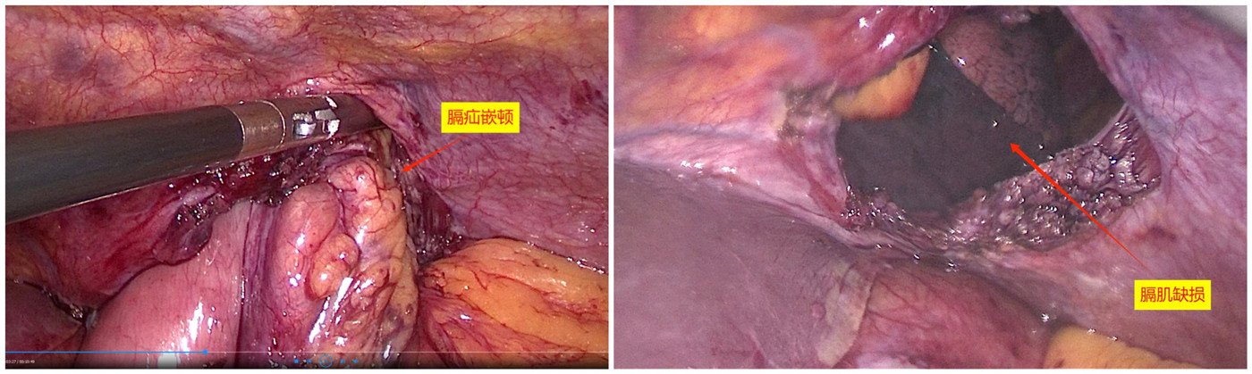 腹腔镜手术见膈疝嵌顿及疝缺损