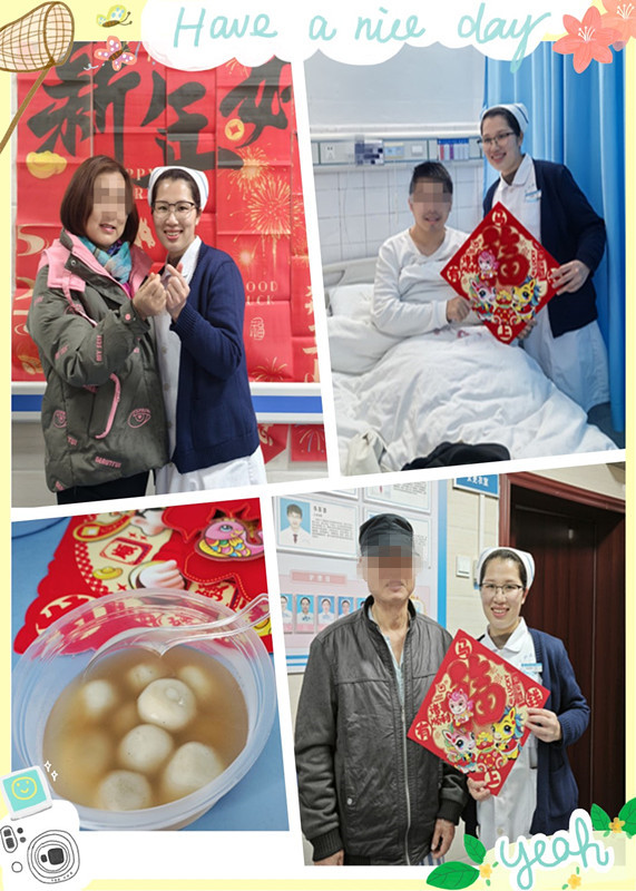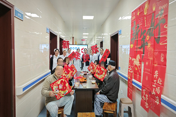 宣教结束后,医护人员提前准备了煮好的汤圆、喜庆的福字和春联。然后走进病房为每一位患者送上福字,一边递上汤圆,一边说着“新年快乐、早日康复”的祝福,一句句暖心的话语、一份份真挚的关怀,驱散了患者心中的孤独与阴霾,让病房里充满了浓浓的年味儿和家的温暖。