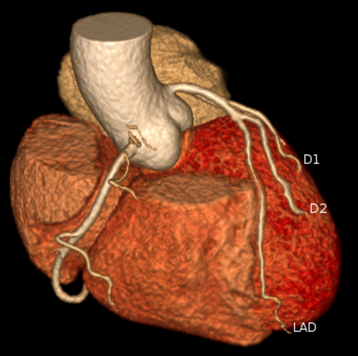 注射少量碘造影剂后,通过CT扫描,计算机能把心脏血管的走行、分支、狭窄处重建出一张高清的3D立体图像。