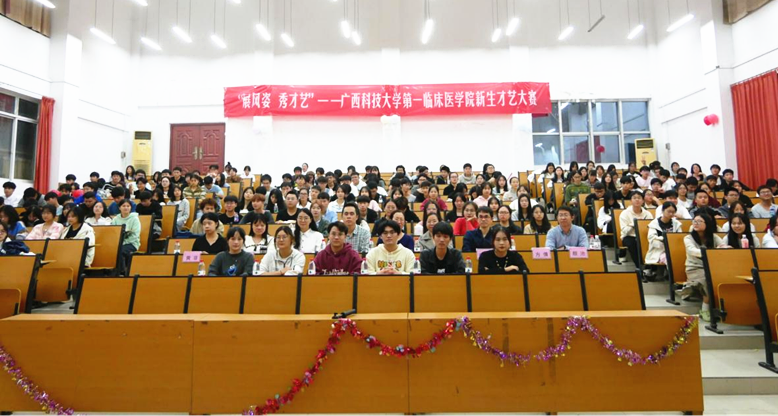 为打造丰富多彩的校园文化生活,激发新生展露才华的积极与热情,12月10日晚,广西科技大学第一临床医学院在柳石校区1111报告厅举办2023级新生才艺大赛。第一临床医学院党委副书记何曲波,团委副书记、学工办副主任许璐,各位辅导员、新生班主任出席比赛,200余名学生到场观看比赛。