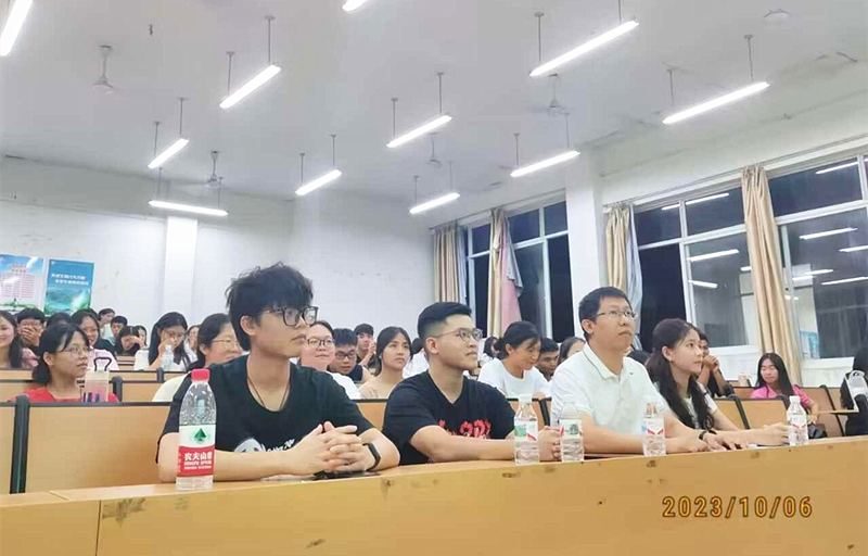 韦俊杰向同学们介绍了学院组织的大学生互联网创业大赛和创业创新训练项目,鼓励同学们积极参与创业和创新,为未来的发展打下坚实基 础。