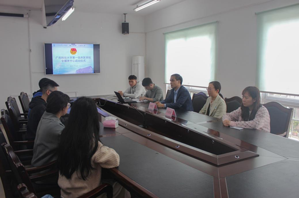 4月16日,广西科技大学第一临床医学院全媒体中心启动仪式在白沙教学点会议室举行。学院党委书记庞晓红、学院党委副书记何曲波、全媒体中心指导老师辜丽娜、江云、安宙等出席仪式。医院团委负责人李凡主持启动仪式,白沙、柳石校区全媒体中心的同学通过线上线下的形式参加。