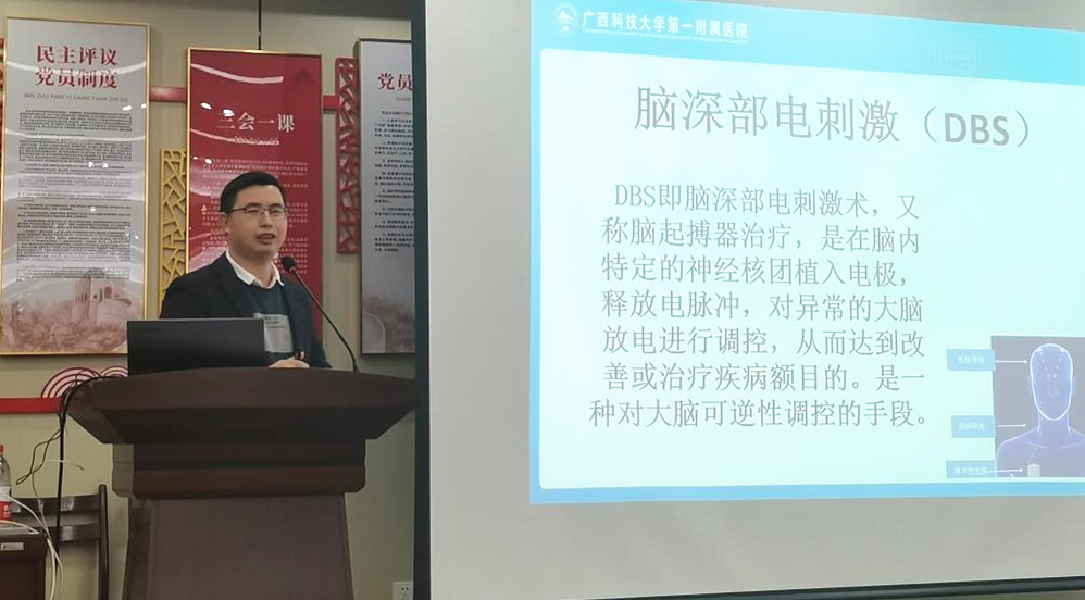 为拓展临床专业学生现代医学知识,11月22日晚,广西科技大学第一临床医学院教工党支部联合学生党支部、行政第二党支部在第一临床医学院党员活动室共同举办“师生汇·师生共话‘医’心路”第三期活动—神经外科手术机器人手术专题讲座,这也是我院打造的“我与专家面对面”学风建设特色品牌项目系列活动之一。