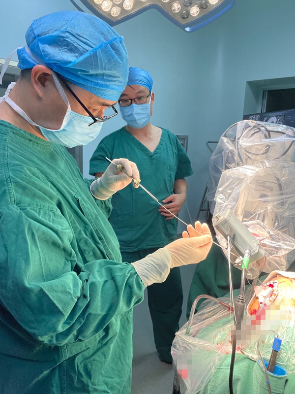 作为我院开展的第一台机器人导航脑深部电刺激术(DBS手术)的主刀医师,谢正德老师从手术原理、术前准备、手术中机器人与医师的配合、术后效果等方面,为同学们进行了详细介绍。通过谢老师的介绍,同学们了解到手术机器人导航,可以在手术中提供更精准定位,引导电极插入脑部功能区时避开血管、减少损伤,同时能进行脑功能监测及脊髓刺激,为手术医生提供更安全、高效的技术保障,也更有利于患者的术后恢复。