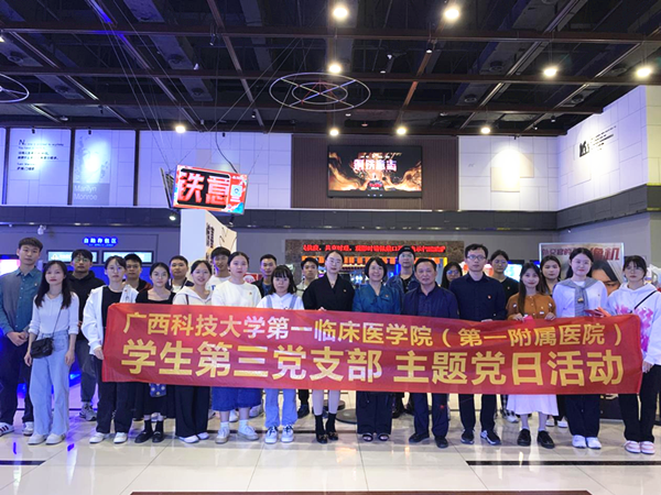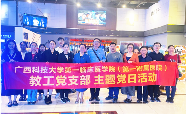 为激发党员同志们的爱国、爱党情怀,弘扬爱国主义精神,0月13日晚八点,广西科技大学第一临床医学院(第一附属医院)教师和学生党支部联合在万达影城组织开展了“永远跟党走、奋进新征程”——《万里归途》观影主题党日活动。