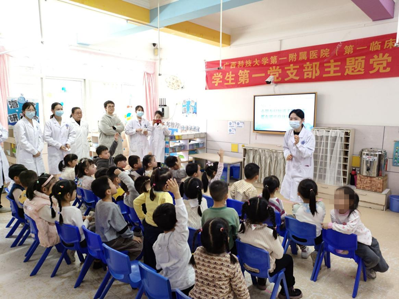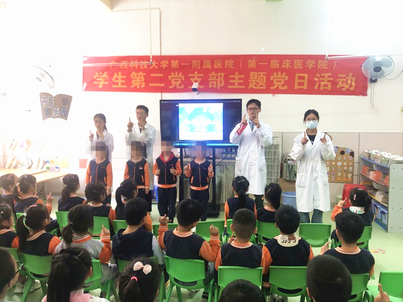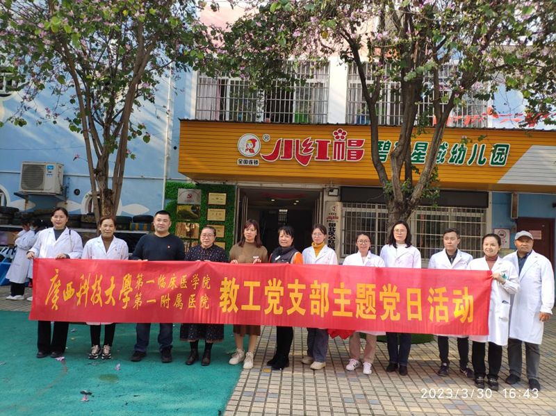 3月30日下午,广西科技大学第一临床医学院学生第一、第二、第三党支部联合教工党支部来到碧丽星城“小红帽幼儿园”开展“学雷锋”主题党日活动。