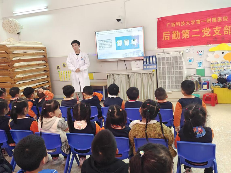 学生第三党支部给幼儿们做口腔护理宣讲