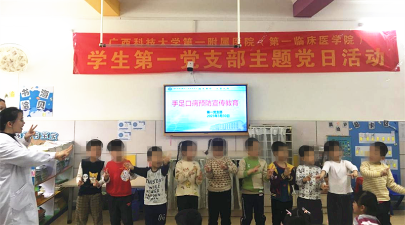 学生第一党支部给幼儿们做手足口病预防的宣讲