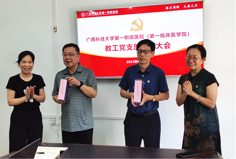 近日,广西科技大学第一临床医学院教工党支部在第一临床医学院实验综合楼2楼会议室召开支部党员大会,学院(医院)党委副书记何曲波参加会议并上党课。会议由教工党支部支部书记陈晓敏主持。