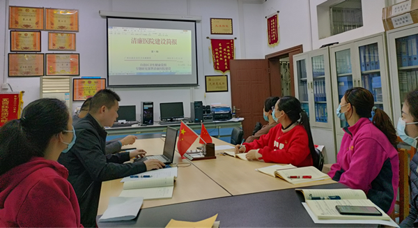 党支部对召开此次专题组织生活会高度重视,为了开好这次会议,支委们认真做好会前准备工作,提高对专题组织生活会重要性的认识,支部组织全体党员认真学习相关文件,端正了态度,统一了思想。党支部书记罗伟波对《习近平总书记视察广西“4·27”重要讲话和对广西工作的系列重要指示精神》进行传达。习近平总书记指出:“要深化疾病预防控制体系改革,强化基层公共卫生体系,创新医防协同机制,提升基层预防、治疗、护理、康复服务水平,毫不放松抓好常态化疫情防控。”习近平总书记的重要指示,每一位党员都内化于心、外化于行。同时,支部书记还带领大家共同学习清廉医院建设简报(第1期),通过学习,每一位党员都要提高政治站位、凝聚共识,切实增强推进清廉医院建设的责任感和使命感,自觉廉洁自律,做一名两袖清风的白衣天使。
