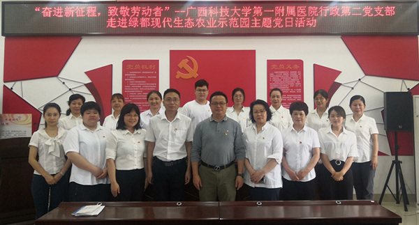 为发挥党员的先锋模范作用,增强党员服务意识,营造勤劳干事的工作环境,5月21日,广西科技大学第一附属医院行政第二党支部前往柳州市农投集团绿都现代生态农业示范园开展“奋进新征程,致敬劳动者”主题党日活动。支部20余名党员参加活动。