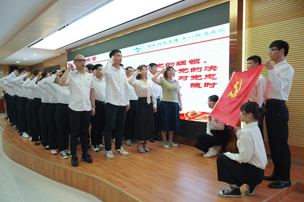 6月11日,广西科技大学第一附属医院(第一临床医学院)举行了预备党员入党宣誓仪式暨预备党员培训开班仪式。党委书记庞晓红进行开班授课,党委副书记何曲波主持了宣誓仪式,院党委委员、党委专职组织员、各支部书记、部分职能科室负责人、团委书记、团委负责人、全体学生党员、全体预备党员、入党积极分子代表参加了仪式。