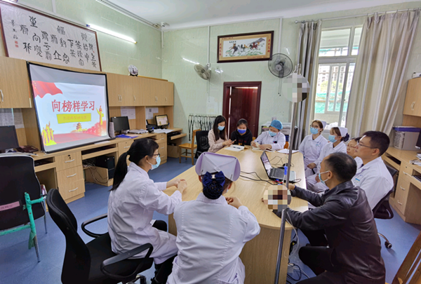 2021年10月21日中午,广西科技大学第一附属医院内科第一党支部在心内科医生办公室组织召开党员大会,支部党员、入党积极分子共14人参加了会议。会议由党支部负责人、心内科副主任李杰主持。副院长张施明同志以普通党员身份参加了支部的学习。