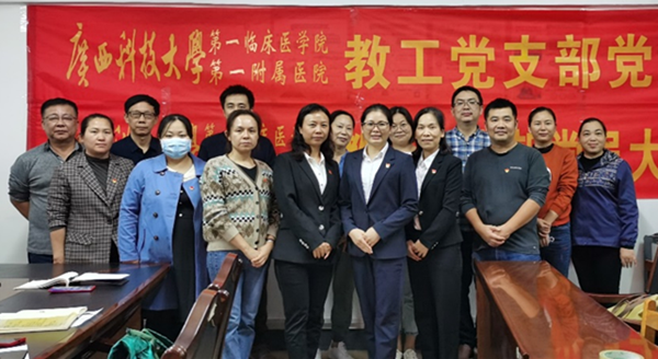 10月28日晚,广西科技大学第一临床医学院教工党支部召开党员大会暨党课学习活动。会议邀请广西科技大学第一附属医院援鄂英雄、重症医学科护长潘慧玲参加,大会由教工党支部书记陈晓敏主持。大会分四部分。