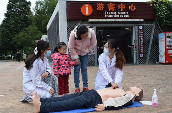 同时,第一临床医学院的党员志愿者们还利用周末和假期,去到公园、商场、社区,为广大群众开展急救知识普及,心肺复苏、海姆立克急救法等技能培训,这些活动理论与实践相结合,现场互动充分,大大激发了参训人员的参与热情,强化了学习效果。“如果我的女儿长大也能像你们一样这么热情、这么能干,我一定感觉非常骄傲!”现场一位参加完培训的阿姨拉着志愿者的手,开心的说到。其他群众也纷纷表示,通过党员志愿者们的培训,不仅学到了基本的急救知识,还纠正了之前的错误认知,对今后的实际生活和工作大有裨益,希望能够多组织此类宣传志愿服务活动,使更多的人受益。