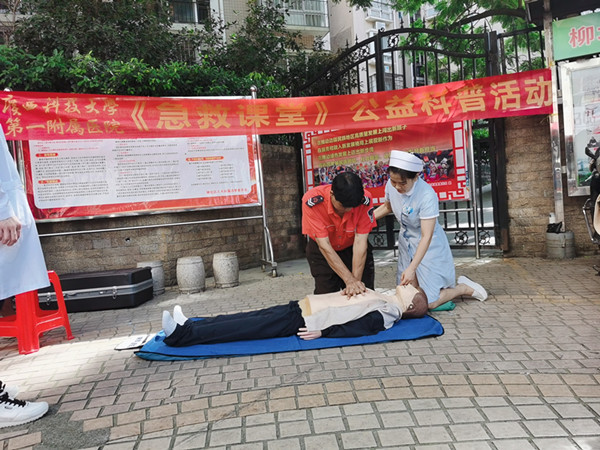 今年四月份起,为推进全民大健康,进一步普及急救知识和技能、强化就诊市民朋友的急救意识,吴洁梅带领门诊部定期在门诊候诊区开展为民办实事公益科普活动《急救课堂》,将义诊和健康宣教结合,现场示范心肺复苏、海姆立克急救法和指导市民实操,让市民朋友等待就诊时不无聊,治好病的同时还能学到实用的急救技能,一举多得,大大提升了患者的就医体验。另外还将《急救课堂》扩展到社区、幼儿园、单位等,联合多学科开展并参与各类义诊,让更广泛人群受益。