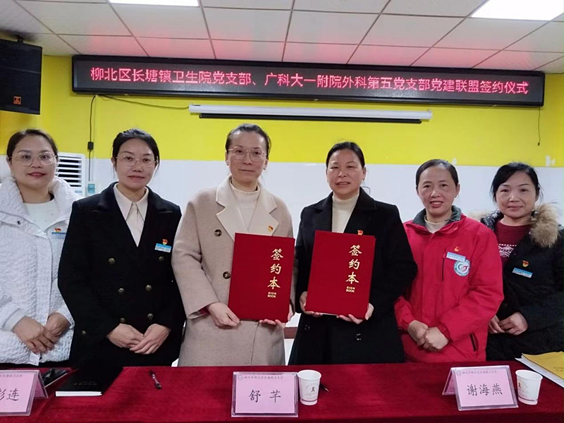 为切实加强党对公立医院的领导,不断激发医联体单位党建新活力,近日,广西科技大学第一附属医院(下简称广西科大一附院)外科第五党支部与柳北区长塘镇卫生院党支部举行“党建引领聚合力,医防融合促发展”党建联盟启动仪式。