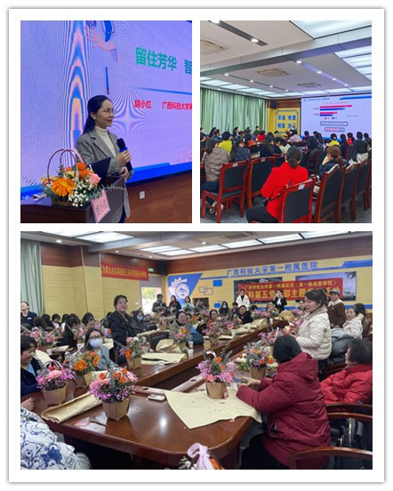 近日,外科第五党支部党员妇科胡小红主任举办《留住芳华,智慧更年》健康知识讲座和三八节插花活动,也邀请长塘卫生院党员代表参与。