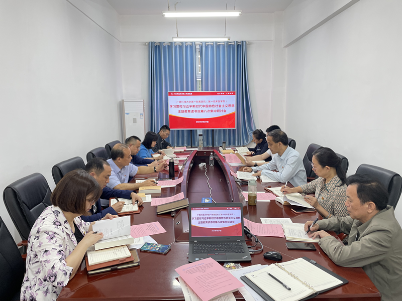 按照广西科技大学第一附属医院(第一临床医学院)党委学习贯彻习近平新时代中国特色社会主义思想主题教育工作方案,5月24日上午,医院(学院)党委学习贯彻习近平新时代中国特色社会主义思想主题教育读书班,在实验综合楼三楼会议室召开第八次集中学习会。会议由医院(学院)党委书记、学习贯彻习近平新时代中国特色社会主义思想主题教育领导小组组长庞晓红主持并领学新修订的《中国共产党章程》。全体院领导、党委委员、党委职能部门负责同志参加集中研讨会。