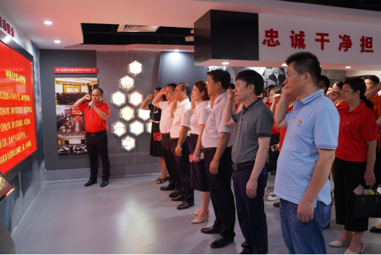 随后,在党风廉政建设展示厅,全体参观学习组党员重温了入党誓词。而四楼的十一冶学习书吧,由奋进之路、影像风华、拾光情怀、丹青墨韵等几个板块组成,每个板块都围绕着“不忘初心、牢记使命”展开。讲习员介绍,书吧采用声、光、电一体化的高科技表现手法,生动的展示了党史学习教育的各方面内涵,让人耳目一新。