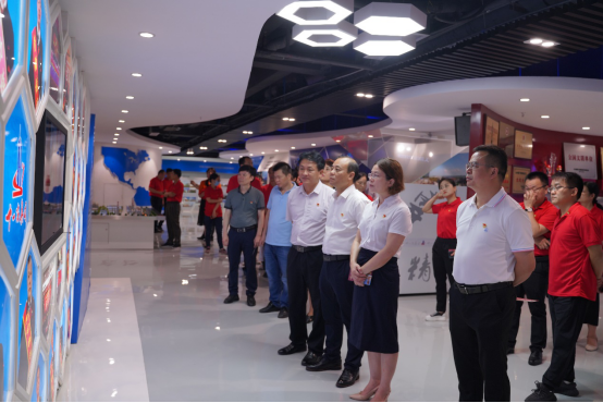 在三楼的企业发展展示厅,十一冶集团的党务工作者,向所有参观的党员介绍了十一冶集团由诞生、发展到壮大的历史以及主业产品展示。在十一冶集团工匠精神展示及劳模展示板前,广大十一冶党员先锋、劳模、一线业务骨干为建设社会主义事业而奋斗的感人瞬间,深深打动了参观的党员,覃莲指出,在医院里,也有很多在平凡岗位中发光发热,为了人民群众身体健康而无私奉献的医务工作者,虽然医院和工业企业是不同行业,但大家为建设中国特色社会主义事业而奋斗的初心是一样的,医院也要参考学习,在更多的地方展示、传播代表医院正能量的楷模、典范。