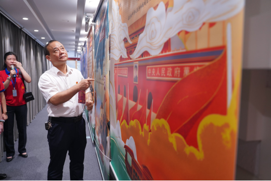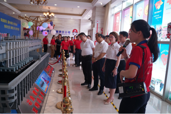 李世杰向全体参观学习组党员介绍了讲习所创办的初衷,讲述了党建引领国企改革的发展之路,阐述了“最是初心能致远、最是匠心能筑梦”的企业党建核心精神。据介绍,新时代讲习所面积360平方米,是广西首家国企新时代讲习所。