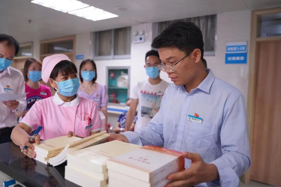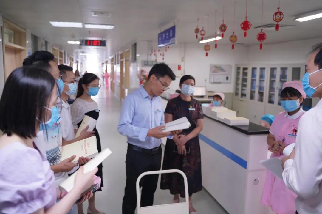 7月14日,广西科技大学第一附属医院(第一临床医学院)行政第一党支部,开展了“送书到科室 党史在心中”主题党日活动。为了方便一线科室学习党史,让党史学习教育渗透到党员生活的方方面面,行政第一党支部的党员们将重要的党史理论书籍,送至部分业务繁忙的临床科室,将党史学习教育课堂延伸到基层一线,让广大党员们第一时间感受到来自党的关怀。