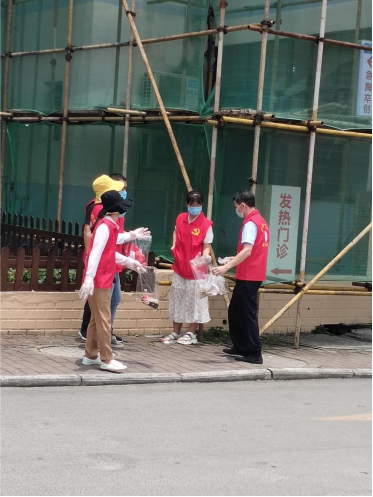 医院党委书记覃莲、副院长闭雄杰,也分别参与到为群众送清凉及卫生大清扫活动,以实际行动带领党员职工为群众服务。