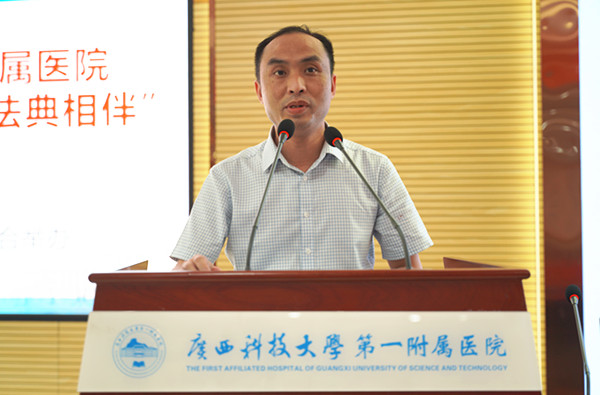 为进一步加强广大医务工作者的法律意识,提升全体教职员工的法律素养,在全院上下营造学法、用法的良好氛围,用更良好的法律道德意识为患者提供优质服务,6月29日下午3点,广西科技大学第一附属医院在学术报告厅举办2022年“美好生活·民法典相伴”主题宣讲活动,邀请到医院法律顾问、广西超仁律师事务所专职律师高山为大家授课。副院长张施明出席会议,各职能科室及临床、医技医务人员100多人参加活动。宣传科负责人辜丽娜主持活动。
