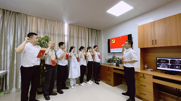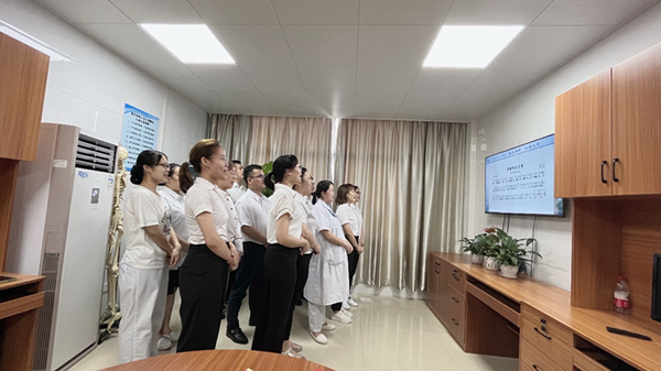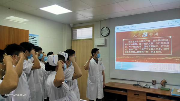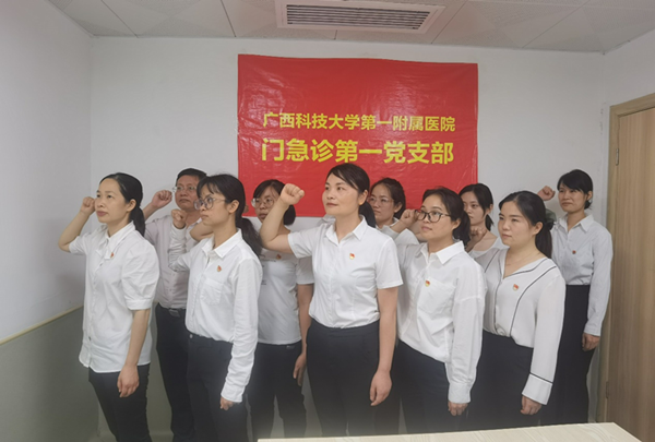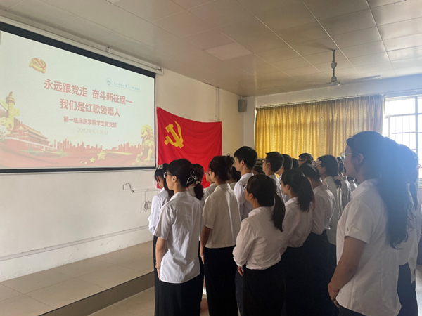 6月30日,广西科技大学第一附属医院(第一临床医学院)各党支部,举行“永远跟党走 奋斗新征程”红色歌曲接力主题党日活动,广大党员干部歌唱红色歌曲、重温入党誓词,用自己的实际行动弘扬爱党爱国情怀,凝聚基层党组织力量,共同庆祝中国共产党成立101周年。