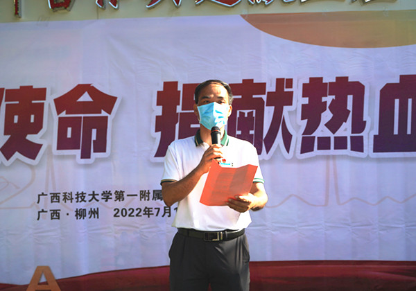活动上,党委书记庞晓红致词。他说:“自新冠肺炎疫情暴发以来,全院干部职工闻令而动,主动请缨支援武汉、百色、靖西、防城港、上海等,这是我们医务工作者的担当,更是医护职业的神圣使命和职责所在。今天,是中国共产党成立101周年,举行‘共同抗疫担使命,捐献热血庆七一’抗疫队员专场献血活动,意义非凡,对每一位参与者来说,也是无上光荣。”