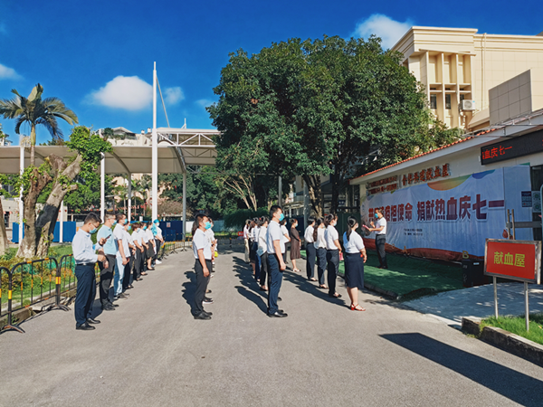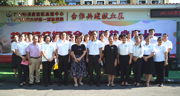 7月1日上午8点10分,广西科技大学第一附属医院在献血屋前举行“共同抗疫担使命,捐献热血庆七一”抗疫队员专场献血活动。医院党委书记庞晓红、党委副书记何曲波、医务部、护理部、以及抗疫队员代表共40多位党员同志参加活动。活动由何曲波主持。