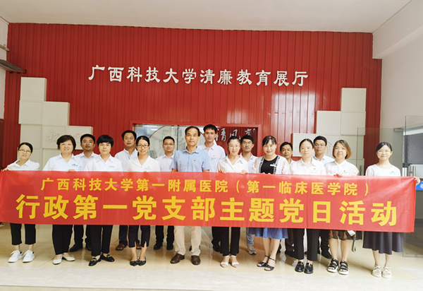为深入推进清廉医院建设,确保我院清廉医院建设工作取得成效,充分发挥廉政文化的引导和警醒作用。7月30日,广西科技大学第一附属医院行政第一支部组织全体党员到广西科技大学清廉教育展厅开展寻“廉”诵“廉”唱“廉”主题党日活动。党委书记庞晓红参加。