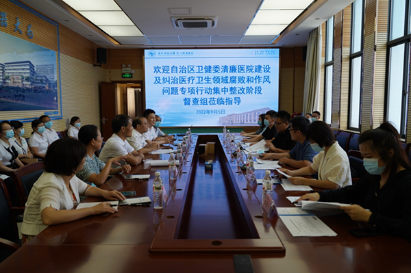 9月5日上午,自治区卫健委清廉医院建设及纠治医疗卫生领域腐败和作风问题专项行动集中整改阶段督察组到我院督查。我院党委书记庞晓红、党委副书记、院长覃天等院领导班子成员参与督查并对我院相关工作进行汇报。